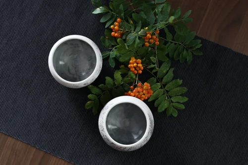 Its shapes and forms carry references to forms found in traditional Sami arts and crafts, Duodji, more specifically the traditional handcarved wooden cups called Guksi. These cups are commonly used in northern Europe by Sami people and the population at large while travelling in nature.