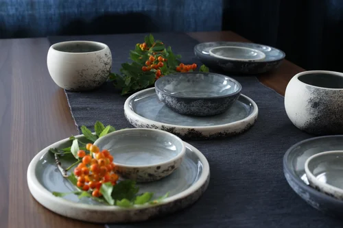 Inspired by eastern ceramics and cuisine, this collection is designed for sharing big spreads of food and flavors in a social setting. Bowls of all sizes, unique handbuilt chopstick rests, sake sets with cups and bottles, handbuilt platters and spoons create the perfect set up for a variety of dishes and drinks.